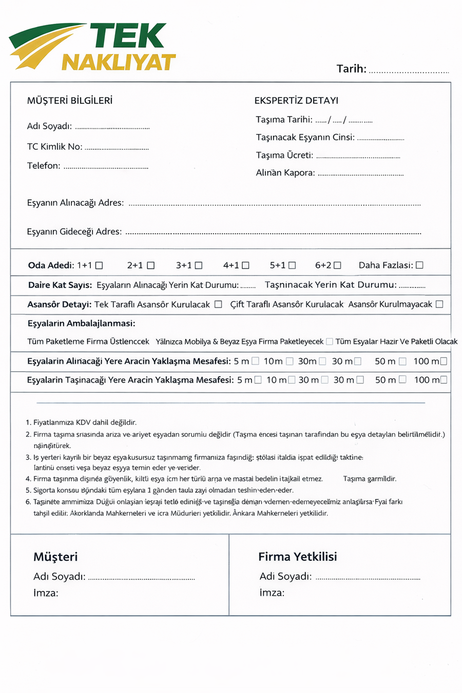 | No | Tarih | Ev / Ofis | Nereden | Nereye | KM | Asansörlü | Fiyat |